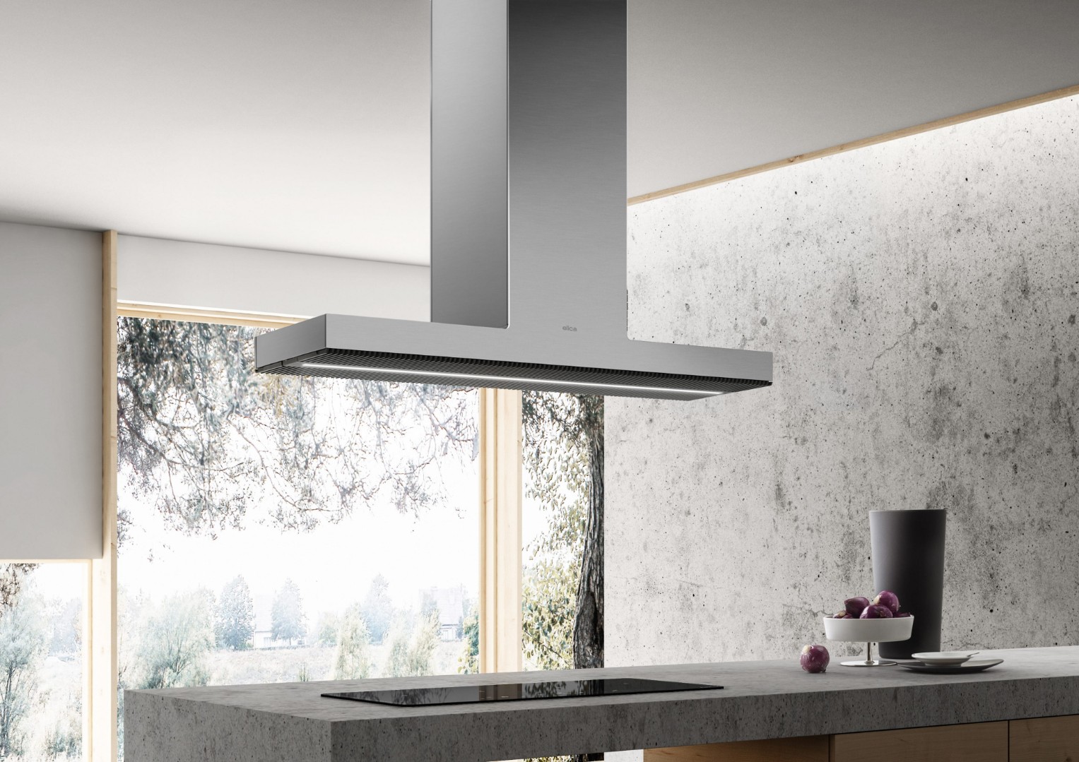 Небольшая глубина Haiku делает ее чрезвычайно эргономичным продуктом без потери производительности при заборе воздуха. Высота корпуса вытяжки 8 см позволяет более эффективно осуществлять забор воздуха на протяжении всей ширины вытяжки, включая островную версию шириной 180 см. Пространство кухни становится более легким и воздушным.