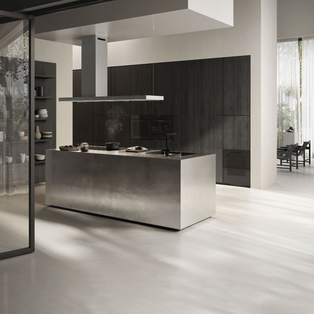 Отделка: Черное стекло, Krion Белый, Керамогранит с эффектом бетона (цемента), Нержавеющая сталь