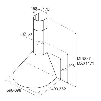 Купольная вытяжка JET AIR ROUND IX/A/60 имеет выразительный дизайн — скругленные линии и цвет «нержавеющая сталь» сделают прибор украшением любой кухни.