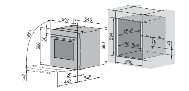 - Габариты ниши для встраивания ВхШхГ, мм: 594-600х560-568х560