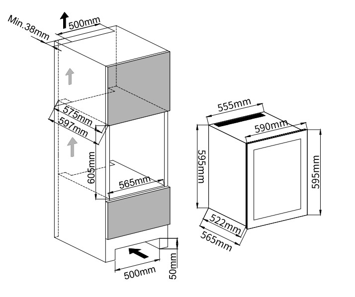- При установке с помощью ножек отрегулируйте винный шкаф по уровню и убедитесь в наличии необходимых зазоров между дверью и мебельными фасадами, чтобы не повредить их.