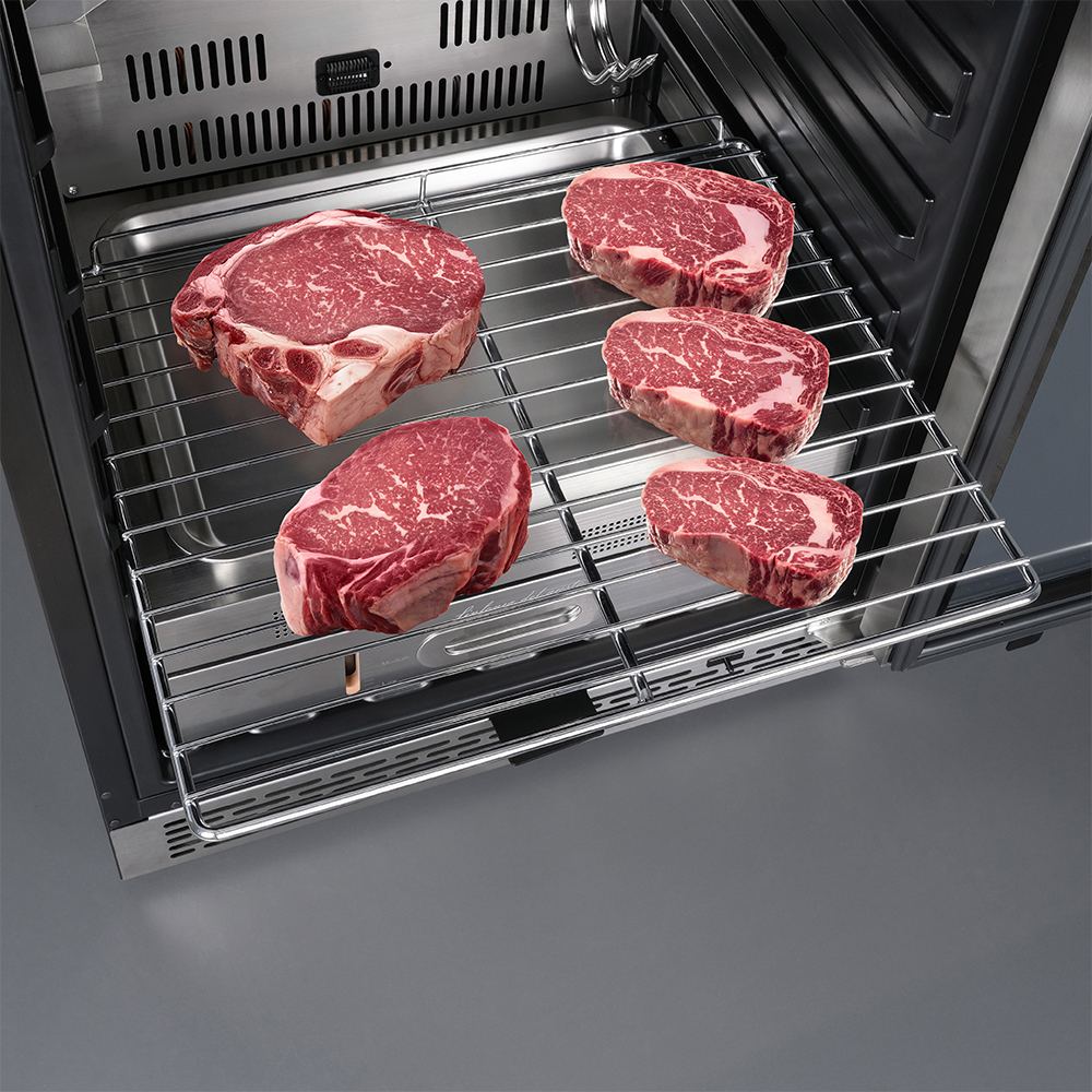 Благодаря широкому температурному диапазону от +1 до +25°C, можно точно настроить параметры для каждого вида мяса. Корпус из стали и стеклянная дверь обеспечивают не только практичность, но и презентабельный внешний вид, который впишется в любой интерьер.